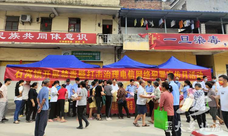为切实提高辖区内群众识毒、防毒、拒毒和预防电信诈骗能力,打好禁毒人民战争和防诈反诈工作狙击战,近日,石窝镇党委、政府带头组织派出所、司法所、综治中心、市场监督管理所、石窝中心校等单位职工在镇农业农村服务中心门口开展禁毒暨打击治理电信网络犯罪宣传月活动。