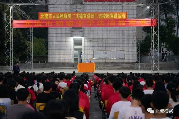 为进一步加强校园法治宣传与教育工作,提高青少年法律意识和风险防范意识,维护青少年合法权益,2021年3月28日晚上,北流市人民检察院邓扬生副检察长带领法治宣讲团队把爱带回北流市初中,为母校七年级1000多名学生带来一场妙语连珠的法治宣讲课。
