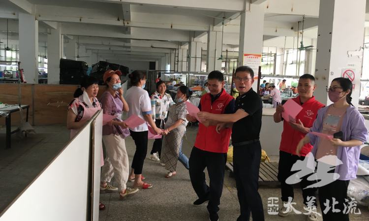 4月20日,北流市经济贸易和科学技术局禁毒志愿者在广西北流明华皮革制品有限公司开展禁毒宣传活动,让企业员工在“壮族三月三”歌圩节中,轻松、快乐学到禁毒知识。