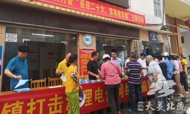 为全面提升辖区内群众禁毒意识和预防电信网络诈骗能力,持续营造全民禁毒、反诈的浓厚氛围,6月2日,新圩镇党委、政府组织平安办、司法所、派出所、乡建中心等单位干部在镇政府门口开展禁毒、打击治理电信网络诈骗犯罪集中宣传月活动。
