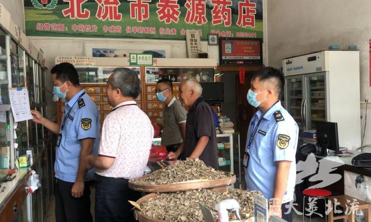 北流市市场监督管理局积极做好汛期药品、医疗器械安全防范工作。6月13日以来,该局组织人员开展专项检查行动,认真排查药品、医疗器械安全隐患,切实加强对重点地区、重点环节、重点单位的药品、医疗器械质量监管。