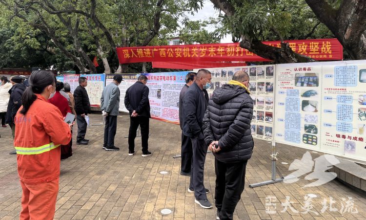 12月9日上午,北流市禁毒办抓住市公安局在市区荔枝公园召开“岁末年初打击突出犯罪攻坚战返赃大会”机会,在现场开展禁毒宣传咨询活动。