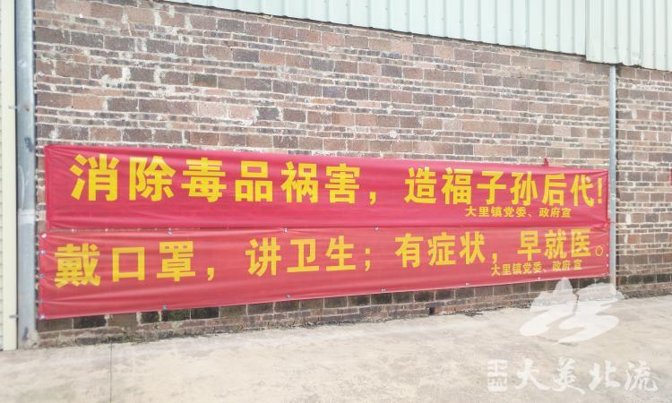 第二、广泛宣传+教育警示,营造浓厚氛围。为营造浓厚的禁毒工作氛围,大里镇充分利用全镇各村、各宣传车的50余个高音喇叭,每天定时将禁毒相关法律法规知识传递到群众的耳朵里、心里。组织党员干部深入集市、超市、工厂等人流密集场所,发放禁毒宣传资料,开展禁毒知识宣传活动,将禁毒种子撒进千家万户。同时,在镇政府、社区戒毒(康复)工作站、各村委会、主干道和重要路段设置禁毒宣传专栏、固定宣传牌,充分利用微信群、朋友圈等,大力普及禁毒知识,提高群众防毒、拒毒能力。今年来,制作宣传栏21个,固定宣传牌15个,发放宣传资料16000余份,悬挂横幅32条,张贴标语320条,张贴海报60张,出动宣传车25次。