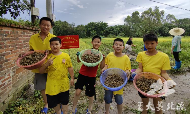 西埌营以农耕自然课堂以及心理课为主题,学生们通过第一天的破冰游戏迅速融入集体,在自然课堂中了解了水稻、花生的生长过程,体验割水稻、拔花生,并晾晒,感受到了耕种的艰辛,食物的来之不易,同时通过参与摸螺、看鸟、摘假蒌等有趣的活动开拓眼界,增长见识。