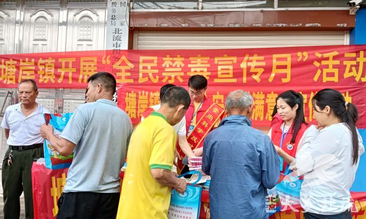 6月26上午,塘岸镇多部门在圩镇上联合开展“6.26”国际禁毒日宣传活动,向广大群众讲解毒品危害、禁毒法律知识等,引导广大群众要筑牢防毒拒毒坚固思想防线,坚决同一切涉毒违法犯罪活动作斗争,做到远离毒品、亲近美好人生。