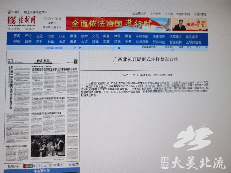 据《法制日报》报道:北流市积极发动社会力量和资金参与禁毒公益宣传,主动联系社会企业合作,从2017年至今,先后引入爱心企业出资免费在城区各出入路口、公园、学校门口、居民小区及人流密集的地方,安装“候车亭”式带LED滚动字幕显示的常态化禁毒公益宣传牌,在主要路口安装滚动广告牌及LED显示屏,每日滚动播放禁毒公益宣传片,城区禁毒宣传全覆盖。此外,与北流市电影发行公司合作,初步实现禁毒宣传行政区域全市278个行政村和12个社区禁毒电影宣传全覆盖。