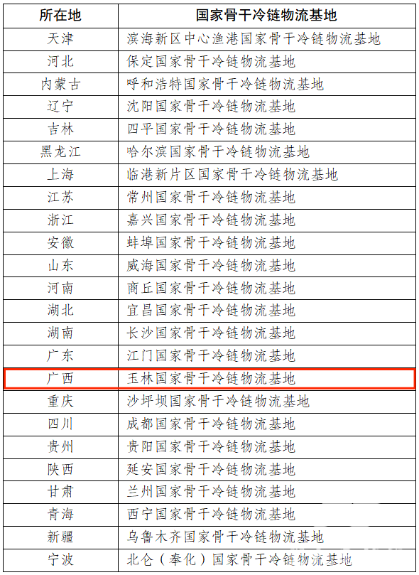 近日,国家发展改革委印发《关于做好2022年国家骨干冷链物流基地建设工作的通知》,发布2022年国家骨干冷链物流基地建设名单。以广西交投玉林(北流)智慧物流园和福达农产品冷链物流园为主体的冷链物流基地成功入选,成为目前广西唯一入选的基地。