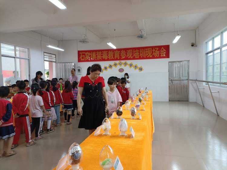 活动中,全体人员在石窝镇教育党委书记、中心学校校长龙颖带领下,一起学习了预防毒品的相关知识、参观了仿真毒品展览。通过学习与参观,师生们展“零距离”见到并认识了常见的60种仿真毒品,感受到了毒品就在身边的危机感,其中不少学生第一次知道跳跳糖、止咳水、神仙水等是毒品,纷纷表示:以后一定要提高警惕,远离毒品。这个活动得了不少家长称赞,他们特意赶来陪孩子一起参观。