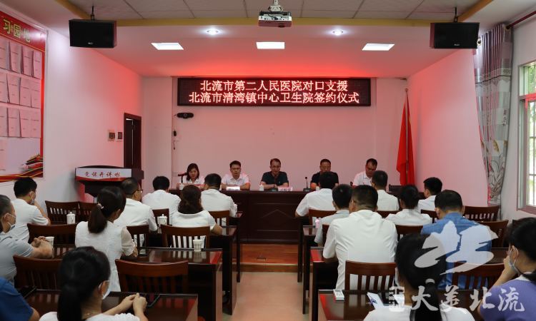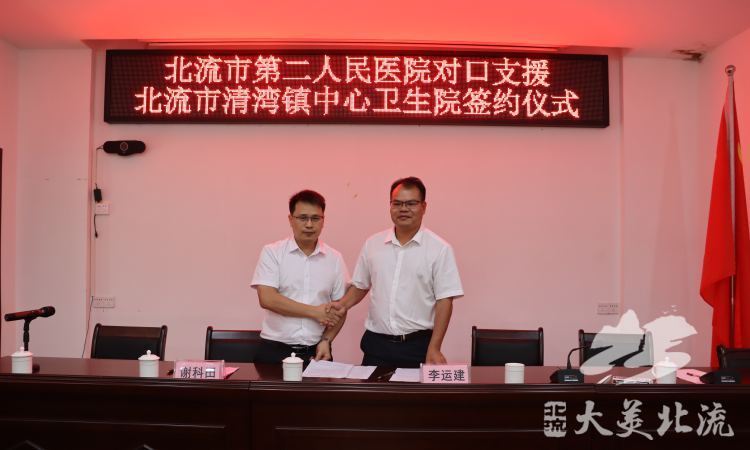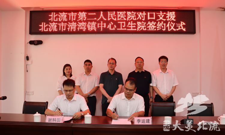 7月7日,北流市第二人民医院与清湾镇中心卫生院在清湾镇中心卫生院举行签约仪式,双方签订《对口支援协议书》。