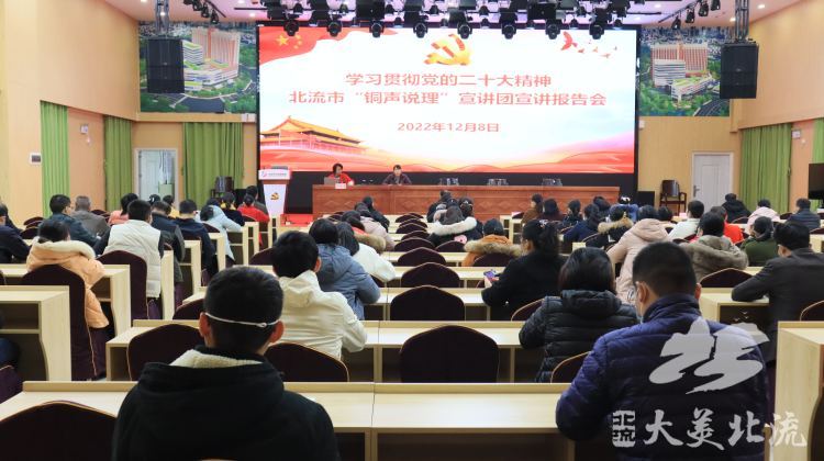 12月8日下午,学习贯彻党的二十大精神北流市“铜声说理”宣讲团到市妇幼保健院开展宣讲活动,市委党校副校长卢昭清以“学习贯彻党的二十大精神 开启社会主义现代化国家建设新征程”为题作宣讲报告,向全院干部职工宣讲党的二十大精神。