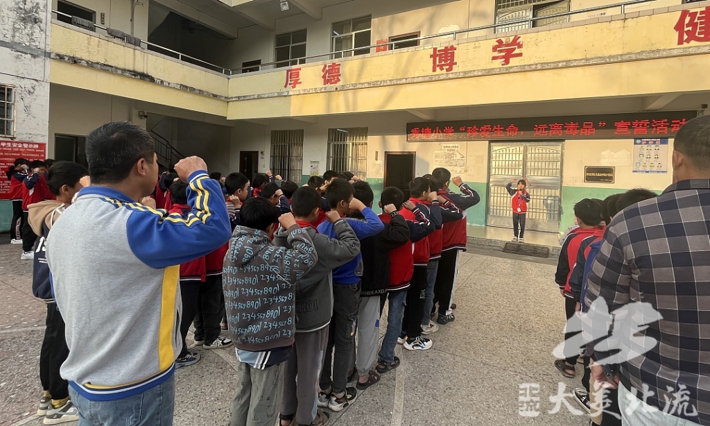 近日,沙垌镇秀塘小学举行全体师生参与的“珍爱生命,远离毒品”宣誓活动。师生们用整齐一致、铿锵有力的誓言,保证不吸毒、不贩毒、不制毒、不种毒,积极投身于禁毒斗争中。