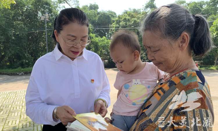 活动通过发放生活垃圾分类投放指南、北流市创建全国民族团结进步示范市和全区铸牢中华民族共同体意识示范市工作应知应会手册等宣传资料,引导村民们正确投放生活垃圾、同时向村民们传达了习近平总书记的重要讲话精神及“中华民族一家亲、同心共筑中国梦”这一理念。