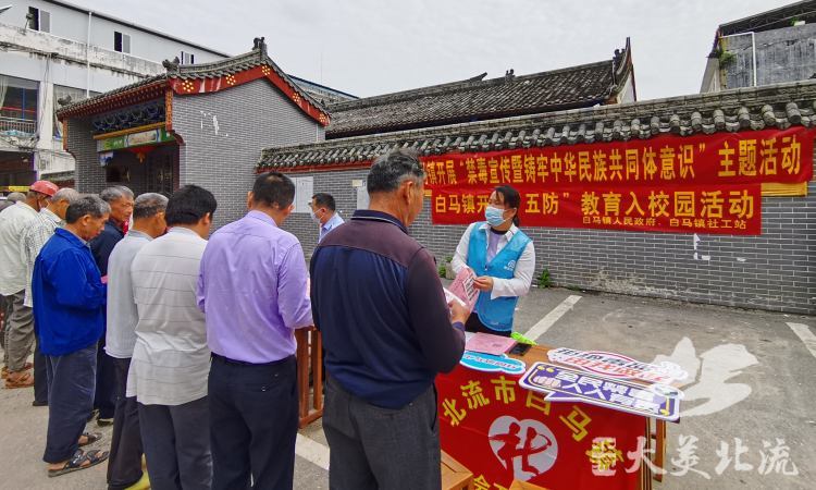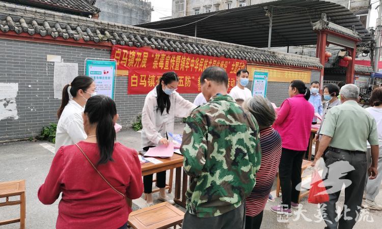 5月18日,白马镇党委政府组织综治中心、乡村建设综合服务中心、文化站、学校、市场监督所等单位,利用圩日在镇上开展禁毒宣传暨铸牢中华民族共同体意识主题活动。
