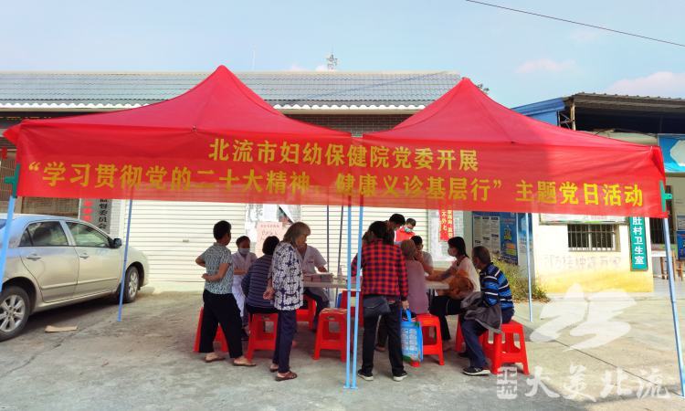 为把学习党的二十大精神转化为为民办实事、解难题的实际行动,11月19日,北流市妇幼保健院党委组织了各党支部书记、支部委员,以及儿科、疼痛科等科室党员医师、志愿者共10余人,到塘岸镇塘肚村开展“学习贯彻党的二十大精神,健康义诊基层行”主题党日活动。