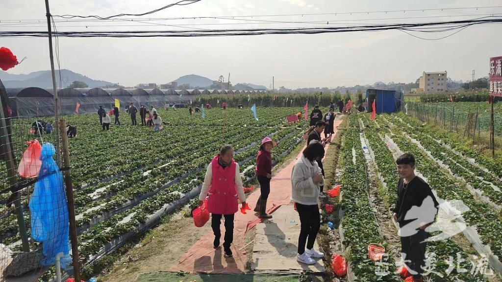 临近春节,民安镇兴上村的多个草莓种植园里,一颗颗红彤彤的草莓陆续成熟上市,给年货市场增添了不少喜庆,同时也吸引了不少游客前来采摘游玩。