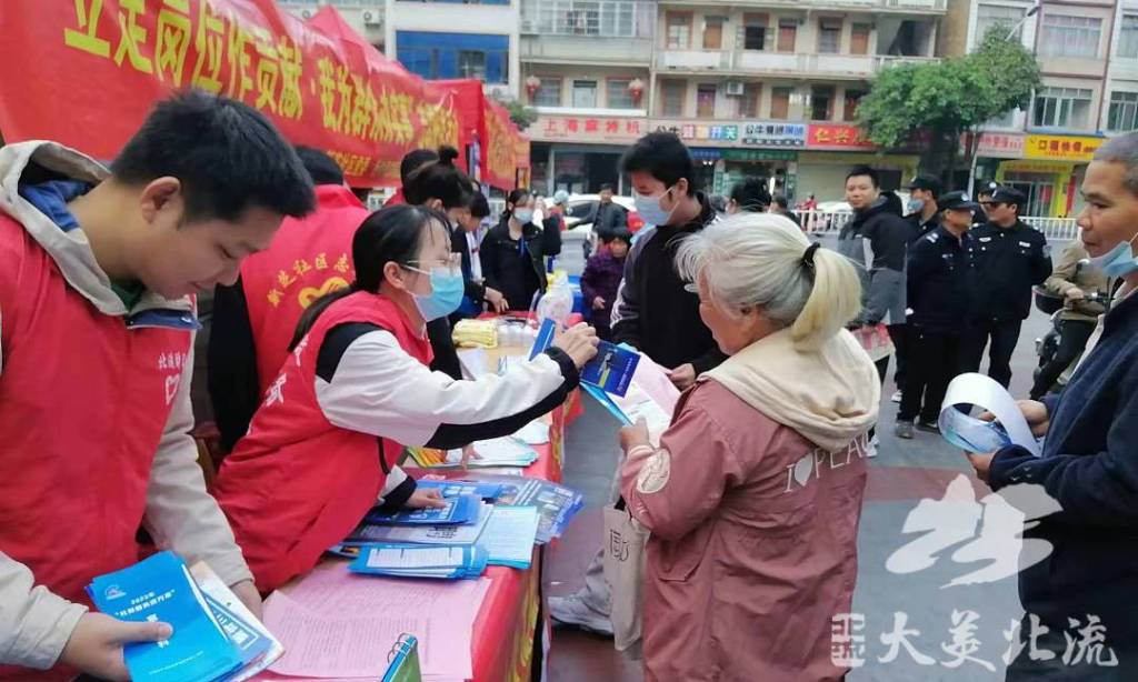 1月4日,北流市财政局组织党员干部志愿者到新芝社区开展禁毒宣传活动,向小区居民发放宣传单,讲解毒品的种类,吸毒、贩毒的危害性等,号召群众自觉做遵纪守法的好公民,积极投身禁毒人民战争, 远离毒品,拒绝诱惑,筑牢“家庭禁毒防线”。