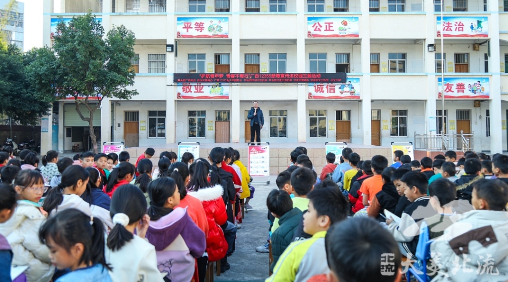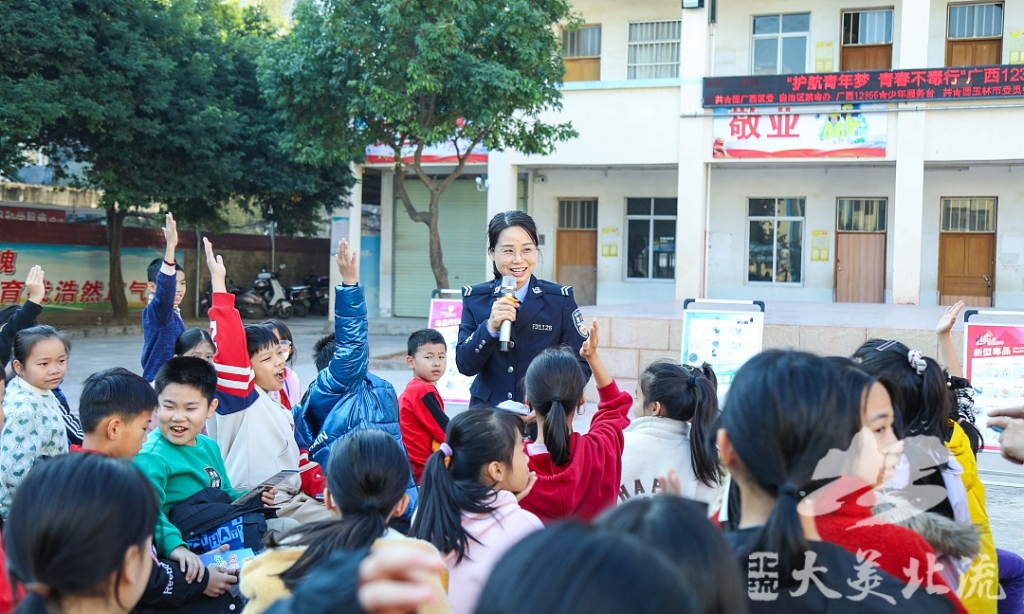 为深入贯彻落实习近平总书记关于禁毒工作的重要指示精神,进一步做好青少年毒品预防教育工作,筑牢禁毒思想防线。12月28日上午,由共青团广西区委、自治区禁毒办、广西12355青少年服务台主办,共青团玉林市委员会、共青团北流市委员会、北流市禁毒办承办的“护航青年梦 青春不毒行”广西12355禁毒宣传进校园主题活动在北流镇丛义小学举行。