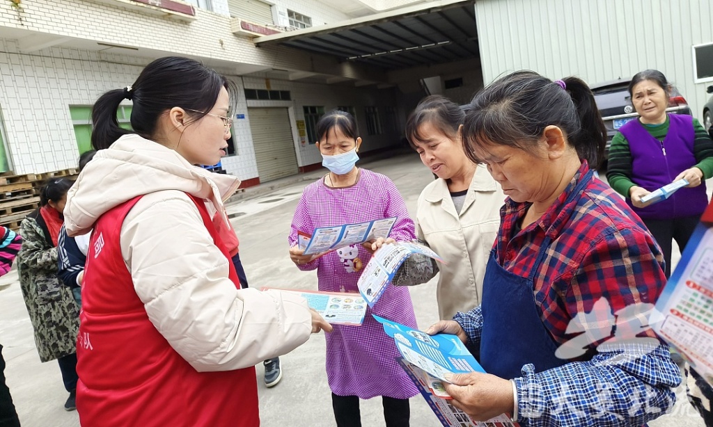 在活动现场,禁毒民警和禁毒工作人员巧借企业工人下班的契机,向他们发放禁毒宣传彩页、禁毒宣传袋,引导他们观看禁毒宣传展板,并以宣传展板为教材,给企业工人普及禁毒知识,重点讲解“聪明水”“彩虹糖”“曲曲饼干”“依托咪酯”“上头电子烟”等新型毒品的伪装性、隐蔽性及危害性。同时,禁毒民警和禁毒工作人员针对在场参加活动的基本上都是中年妇女,特定对她们进行吸毒对家庭的严重危害、青少年吸毒的诱因、如何教育子女不沾毒品等方面知识的宣传,并鼓励女员工充分发挥半边天的作用,带动家人共同坚决抵制毒品危害。