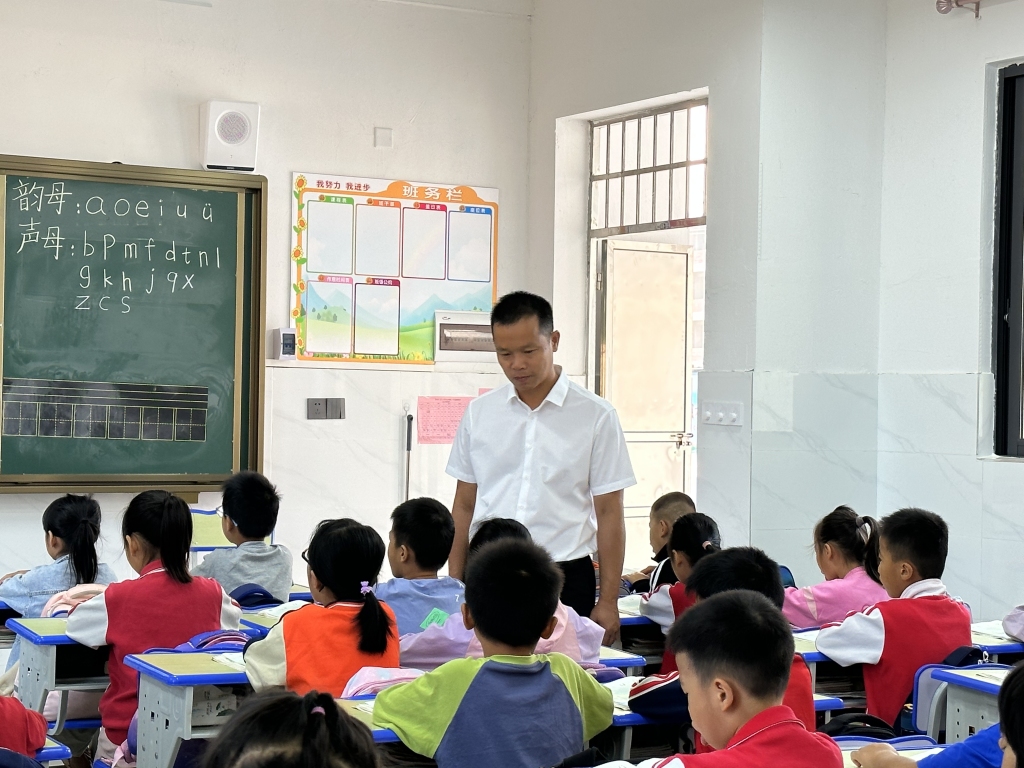 北流市永丰小学民乐产业园校区校长 李军:“在这里,教师们幸福教书育人,孩子们快乐学习成长,一切都以最好的姿态迎接新的发展和挑战。”
