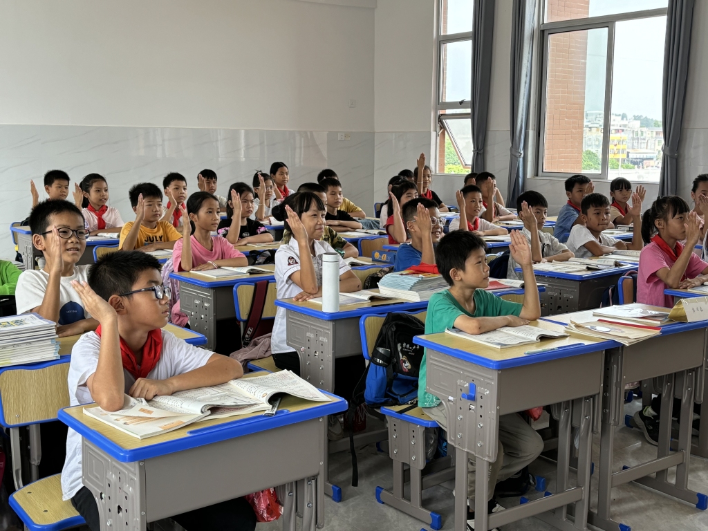 北流市融媒体中心节目主持人 黎阳:“现在我所在的位置就是今年北流市新建投入使用的4所学校之一,北流市永丰小学民乐产业园校区。该校主要为广西(北流)轻工产业园(民乐片区)务工人员的随迁子女就读提供优质的教育资源,是优化全市营商环境,扩大招商引资影响力和吸引力的一个有力举措”