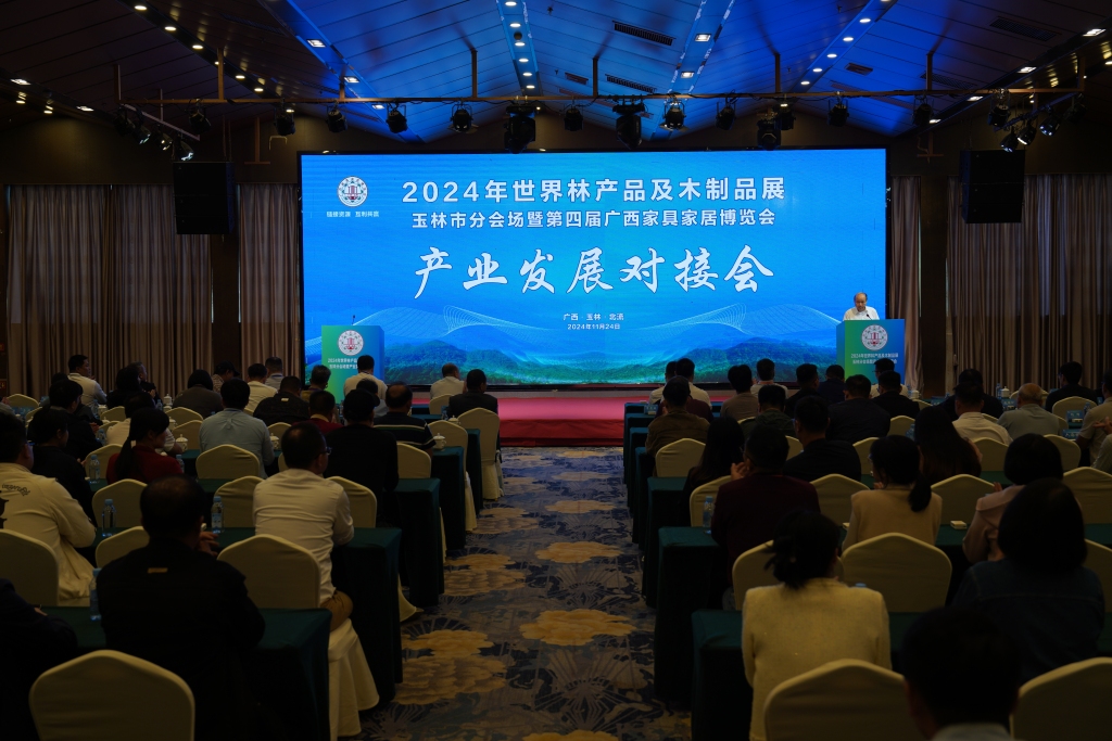 11月24日,2024年世界林产品及木制品展玉林市分会场暨第四届广西家具家居博览会产业发展对接会在北流城区召开。玉林市林业局副局长李毅,北流市委常委、副市长李剑锋,橡胶木及制品国家创新联盟秘书长戚士龙等出席会议。
